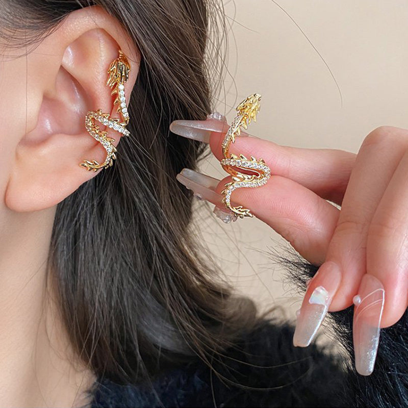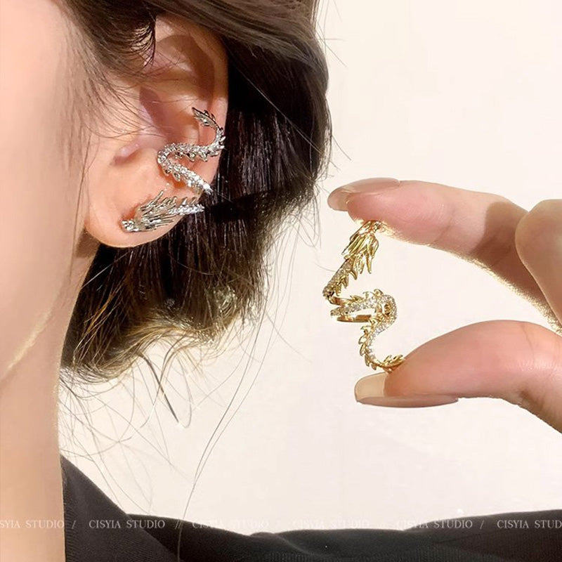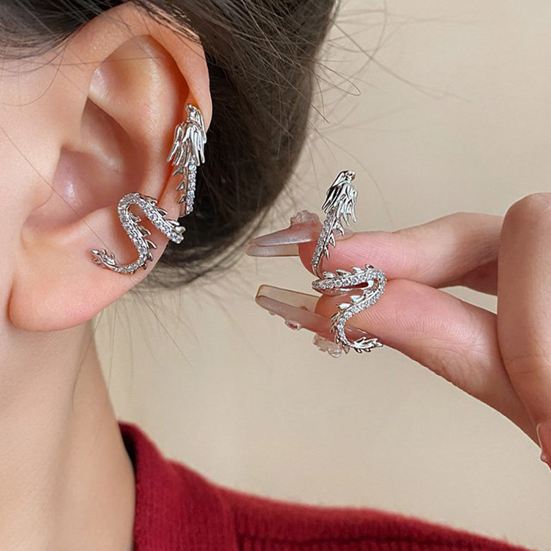 EAR CUFF EFFECT - These ear cuffs are designed as ear climbers, showcasing the shape of a dragon. The intricate details and lifelike representation give them a sense of vitality and charm, making them a captivating addition to your ear jewelry collection.