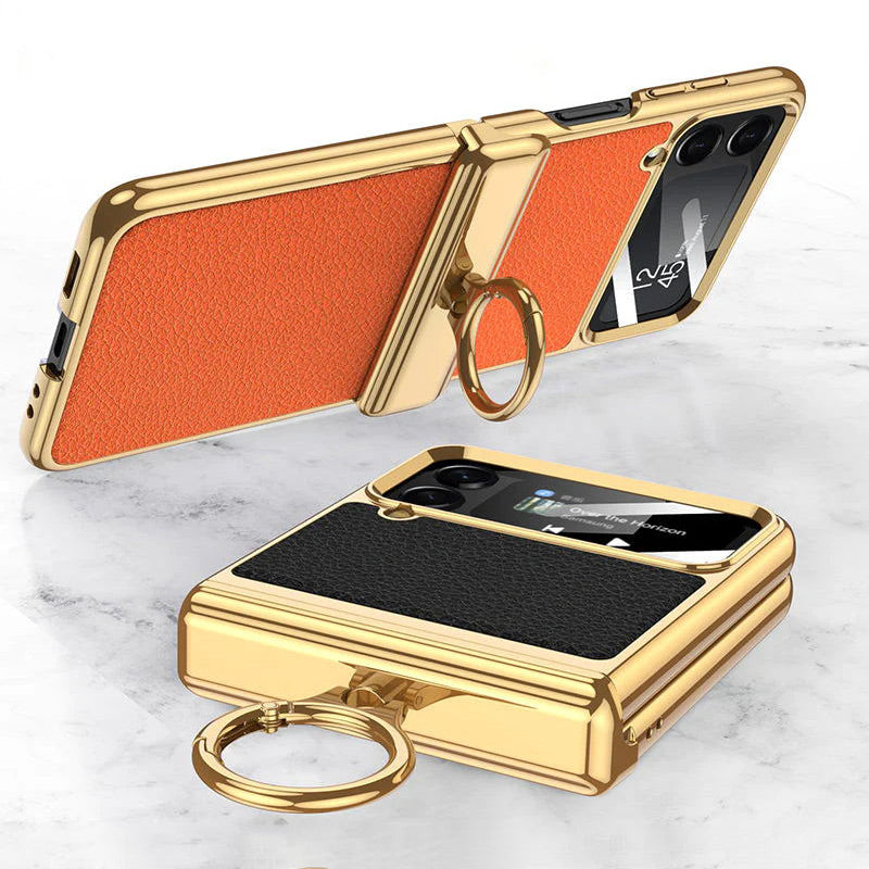 Electroplated Leather Magnetic Hinge Phone Case For Samsung Galaxy Z Flip4 Flip3 5G