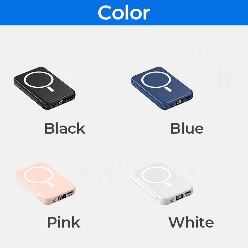 Practical LED display: The Wireless Magnetic Power Bank also features an LED display that shows the charging status of your device. This makes it easy to keep track of how much power your device has left, and when it is time to recharge.