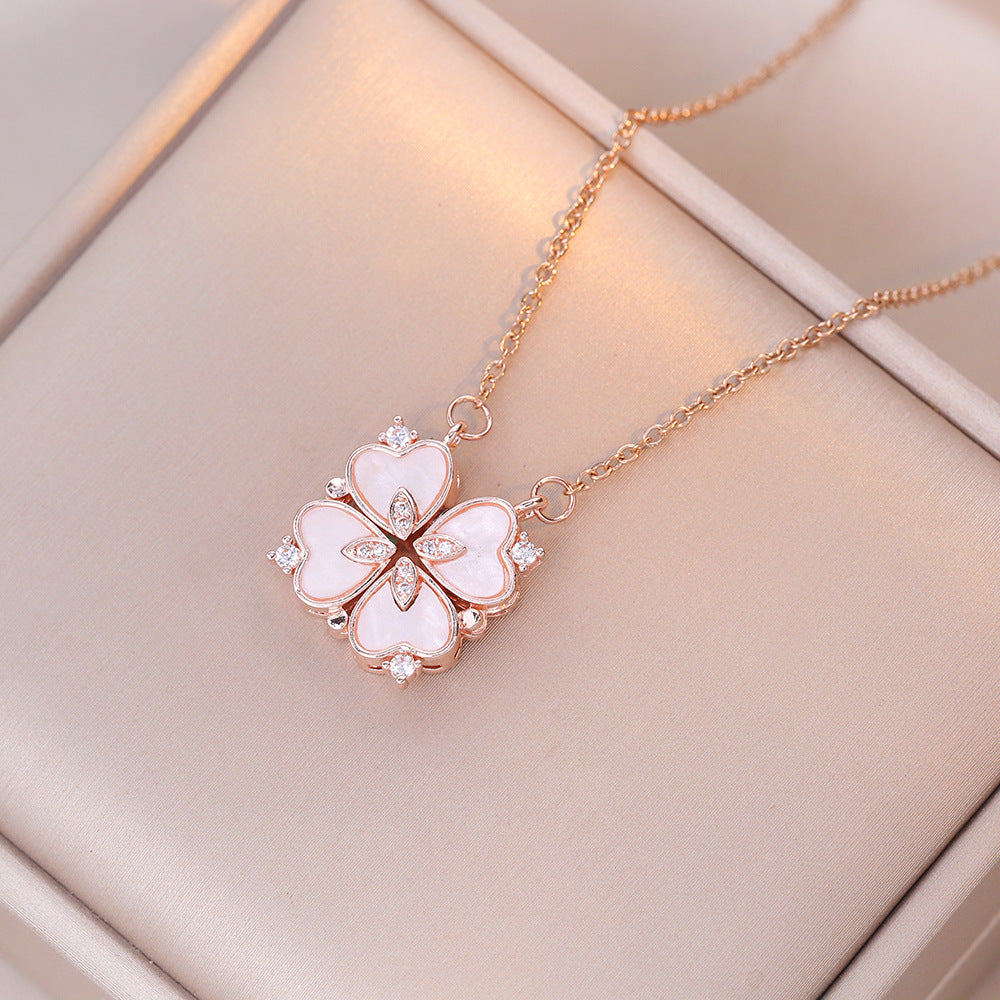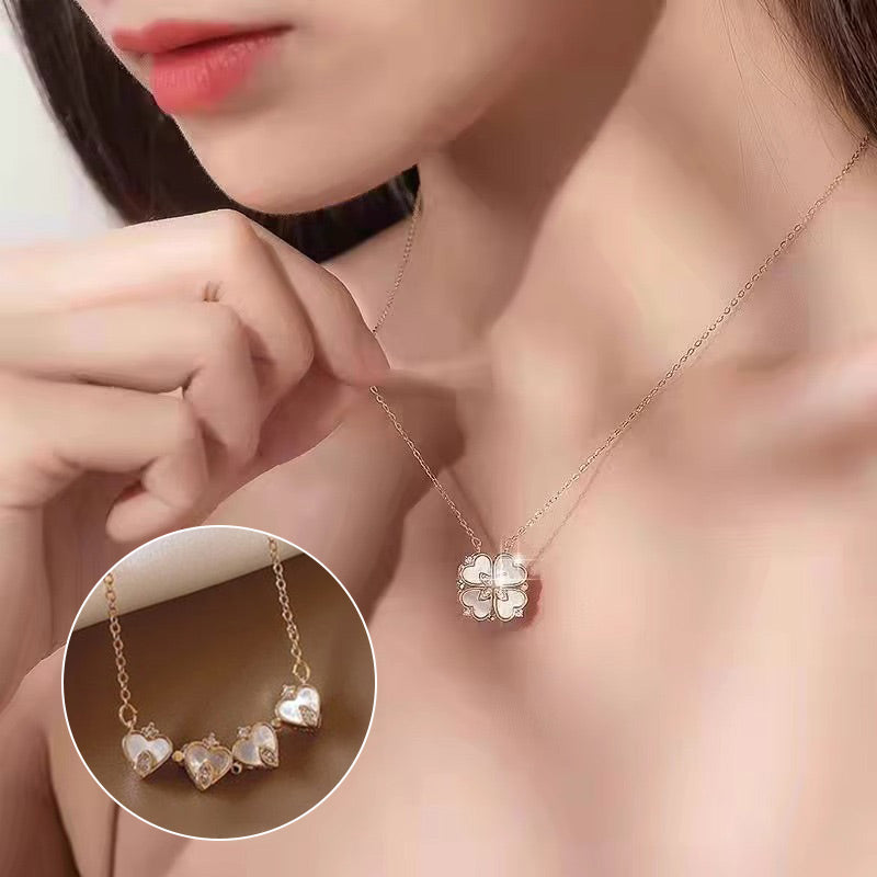 TWO-WAY WEAR DESIGN: This necklace offers two distinct styles, allowing you to wear it as a classic heart pendant or showcase the four-leaf clover design for a playful look.