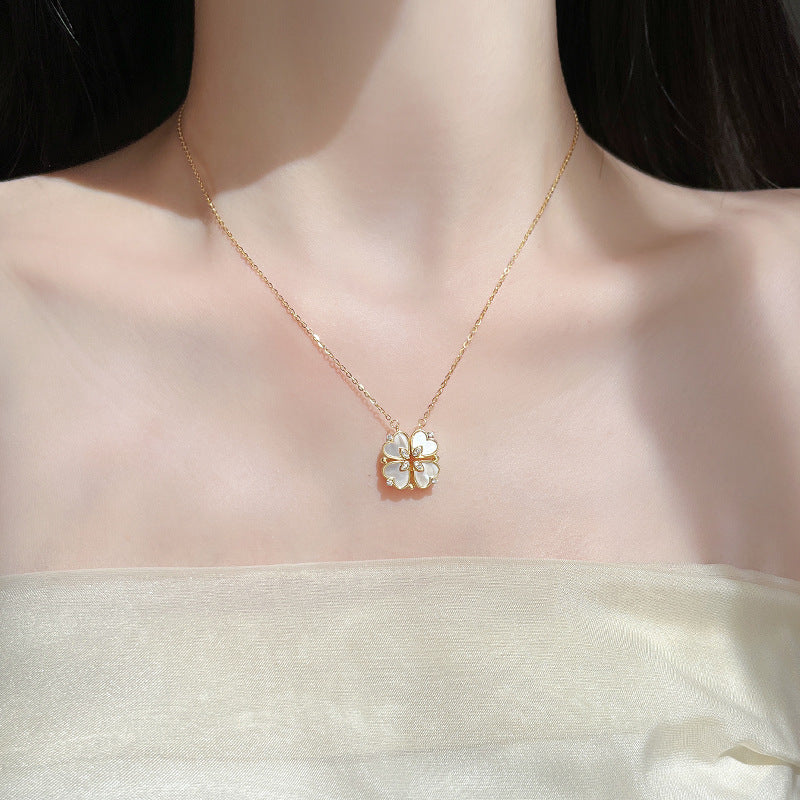 Micro-set Pearl Shell Quatrefoil Zirconia Necklace