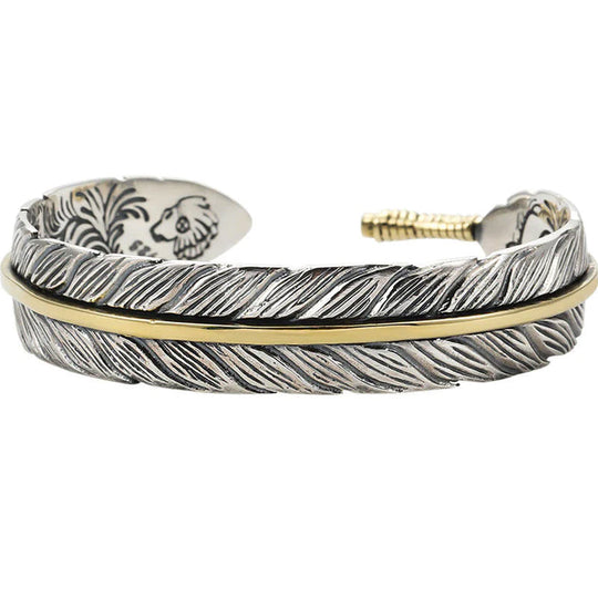 Amazing retro style feather bracelet in gold and silver colors, which is sure to get compliments in an extraordinary way.